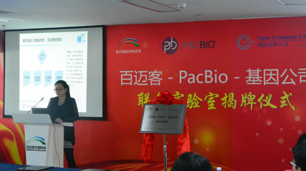 12 月27日,北京百邁客生物科技有限公司與PacBio、基因有限公司舉行了聯(lián)合實驗室揭牌儀式。北京百邁客生物科技有限公司創(chuàng)始人、董事長兼CEO鄭洪坤 先生,PacBio公司 Senior Director of Sales -North Asia(北亞區(qū)高級銷售總監(jiān))牟德宜女士;基因有限公司儀器事業(yè)部總經(jīng)理項連才先生等多位三方代表參加了揭牌儀式。轉(zhuǎn)化醫(yī)學(xué)、生物谷、測序中國作為特邀 媒體參加了本次揭牌儀式。