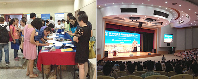 2015年7月22日,由中國植物病理學會主辦,海南大學環(huán)境與植物保護學院等承辦的“中國植物病理學會2015年學術(shù)年會暨第五屆中美植物病理學學術(shù)研 討會”在??谑姓匍_。本屆學術(shù)年會以“協(xié)同創(chuàng)新,綠色健康,開啟植物病理學的新未來”為主題,共吸引了1200多名科研工作者參加。大會共設(shè)真 菌及真菌病害、病毒及病毒病害、抗病性與分子互作等七個分會場。北京百邁客生物科技有限公司受邀參加了此次盛會,并在主會場思源大禮堂內(nèi)設(shè)立了展臺,該展 臺吸引了眾多專家學者前來交流。百邁客工作人員也就如何利用高通量測序技術(shù)解決植物病理學研究等問題同咨詢?nèi)藛T進行了友好的溝通和交流,現(xiàn)場氣氛熱烈。