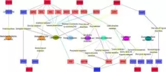 為了研究GPR和HDAC共表達(dá)網(wǎng)絡(luò)的生物學(xué)意義,改研究注釋了相關(guān)的信號(hào)通路和KEGG功能,發(fā)現(xiàn)顯著差異的鄰近基因被分類到瘤胃上皮細(xì)胞的生理調(diào)節(jié)過程,因此發(fā)現(xiàn)了兩類和上皮細(xì)胞生長(zhǎng)調(diào)節(jié)有關(guān)系的功能網(wǎng)絡(luò),其中一類是上皮細(xì)胞生長(zhǎng)網(wǎng)絡(luò)(包括細(xì)胞凋亡,增殖和分化,見下圖7),另外一類是上皮細(xì)胞的代謝網(wǎng)絡(luò)(包括輔酶因子和維生素代謝,能量代謝、氨基酸代謝等,見下圖8);