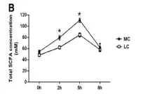 1、短鏈脂肪酸(SCFA)濃度變化分析: