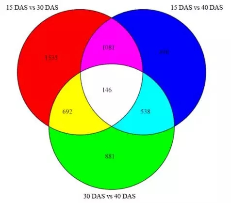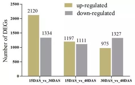 3.為了鑒定在洋蔥球莖膨脹過程中活躍的通路,將得到的unigenes與KEGG數(shù)據(jù)庫中標準參考通路進行比對。15 DAS vs. 30 DAS注釋到了95個pathway,15 DAS vs. 40 DAS 注釋到了79個pathway,30 DAS vs. 40 DAS注釋到了86個pathway。共有6113個unigenes注釋到了120條KEGG通路中?!暗矸酆驼崽谴x”構(gòu)成了各樣本文庫中的初級代謝途徑,并有可能在球莖膨大和發(fā)育過程中活性更高。