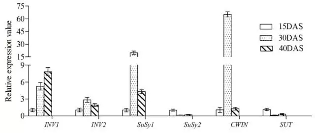 5.使用qRT-PCR驗證參與蔗糖代謝的差異表達基因。這6個差異表達基因的表達水平與RNA-seq結(jié)果是一致的。