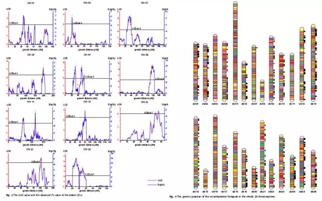 (2)重組熱點(diǎn)分析發(fā)現(xiàn)26條連鎖群中,21條含有重組熱點(diǎn)區(qū)域,A套中9條LG含有重組熱點(diǎn),D套中12條LG含有重組熱點(diǎn)。所有LG中,13號含有重組熱點(diǎn)最多,有196個。