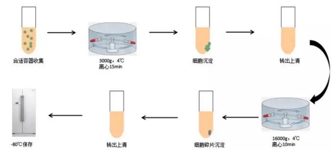 使用合適的容器收集細(xì)胞培養(yǎng)液或其他生物液體。3000g,4℃,離心15min。小心轉(zhuǎn)移上清液至新的無(wú)菌離心管中。將分離出的細(xì)胞上清液16000g,4℃,離心10min。槍頭不要觸碰到管底一側(cè)的雜質(zhì),小心轉(zhuǎn)移上清到新的無(wú)菌離心管中,-80℃保存。大體積干冰運(yùn)輸。