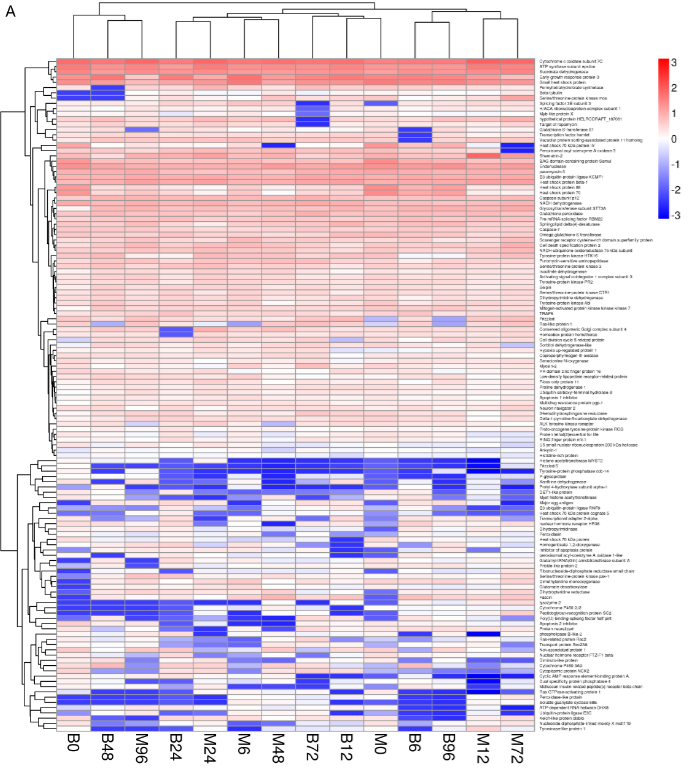 2017年,中國水產(chǎn)科學院喻達輝老師在百邁客云平臺上對合浦珠母貝免疫相關數(shù)據(jù)進行分析,2篇文章(合浦珠母貝)先后分別發(fā)表于同一個雜志《Fish & Shell?sh Immunology》,這兩篇文章中都進行了聚類熱圖分析。第一篇文章中研究人員將免疫相關差異表達基因按照不同時期進行分層聚類分析,第二篇文章中研究人員將不同時期的unigene進行了聚類熱圖分析,為后續(xù)研究結果的呈現(xiàn)做了較好的鋪墊作用。