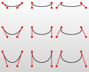 當(dāng)一個(gè)點(diǎn)某一側(cè)的控制點(diǎn)是它另一側(cè)的控制點(diǎn)的對(duì)稱(以保持斜率不變),可以使用S命令。簡(jiǎn)寫(xiě)的貝塞爾曲線命令。