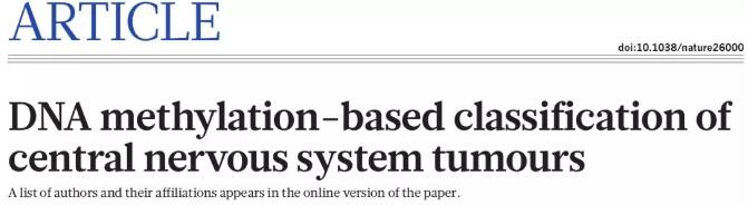 2018年3月14號(hào),德國(guó)海德堡大學(xué)醫(yī)院神經(jīng)病理學(xué)系等機(jī)構(gòu)的專(zhuān)家,在Nature雜志上提出了一個(gè)全面的基于DNA甲基化對(duì)中樞神經(jīng)系統(tǒng)腫瘤分類(lèi)方法。他們發(fā)現(xiàn)相比于常規(guī)方法,顯著提高了準(zhǔn)確性,修正了12%病例的初始組織病理學(xué)診斷結(jié)果。