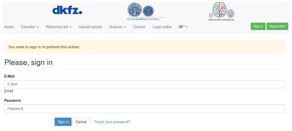 該網(wǎng)站可用于大多數(shù)中樞神經(jīng)系統(tǒng)腫瘤基于DNA甲基化進(jìn)行分子分型。首先生成并上傳您感興趣的腫瘤450K甲基化芯片或者EPIC芯片未經(jīng)處理的IDAT文件,隨后將自動(dòng)與2800多種神經(jīng)病理學(xué)腫瘤甲基化數(shù)據(jù)(目前包括80多種腫瘤類(lèi)型或亞型)進(jìn)行比較。幾分鐘內(nèi),即可通過(guò)email收到您所提供的病例的甲基化圖譜報(bào)告、根據(jù)芯片數(shù)據(jù)計(jì)算的低分辨率拷貝數(shù)CNV圖以及預(yù)估的MGMT啟動(dòng)子甲基化狀態(tài)。