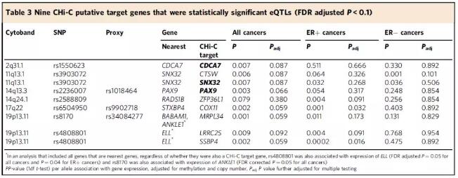 捕獲Hi-C測序鑒定33個(gè)乳腺癌風(fēng)險(xiǎn)基因座潛在的110個(gè)靶基因