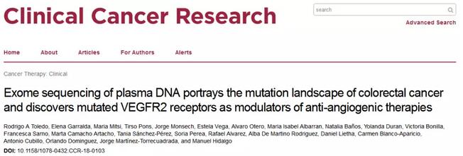 參考文獻(xiàn):Toledo R A, Garralda E, Mitsi M, et al. Exome sequencing of plasma DNA portrays the mutation landscape of colorectal cancer and discovers mutated VEGFR2 receptors as modulators of anti-angiogenic therapies[J]. Clinical Cancer Research, 2018: CLIN CANCER RES. 0103.2018.(IF=9.619)
