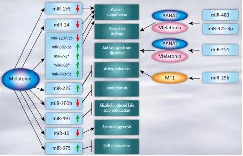圖1 miRNAs與褪黑激素的功能互作