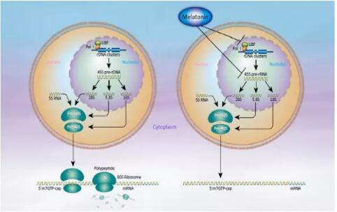 圖3 侵襲性乳腺癌細(xì)胞中褪黑激素對核糖體生物合成的抑制作用