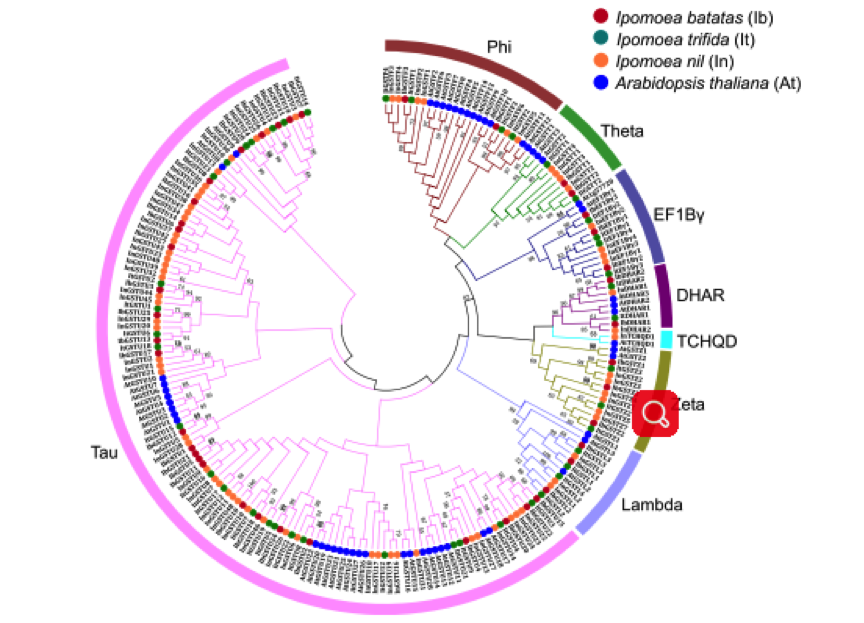 通過(guò)鑒定和分析谷胱甘肽S轉(zhuǎn)移酶基因家族揭示甘薯地上和地下組織響應(yīng)非生物脅迫中的GST介導(dǎo)的網(wǎng)絡(luò)調(diào)控機(jī)制