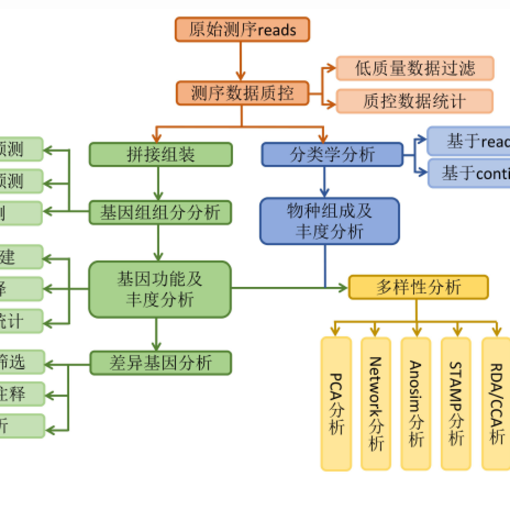 基本分析支持用戶自定義參數(shù)進(jìn)行分析。可自定義宏基因組基本分析的主要參數(shù),包括“綜合選項(xiàng)”、“原始數(shù)據(jù)導(dǎo)入”、“數(shù)據(jù)質(zhì)控過濾”,“基本參數(shù)設(shè)置”、“環(huán)境因子設(shè)置”、“樣品分組信息”等六個參數(shù)模塊 ,填寫并確認(rèn)參數(shù)信息后點(diǎn)擊“提交”即可運(yùn)行該項(xiàng)目基本分析,可在“總覽/我的項(xiàng)目”或 “總覽/我的任務(wù)”中查看。