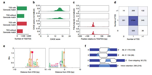 1、鑒定到4234 TSSs 和3883 TESs,其中Genecode數(shù)據(jù)庫已知2476 TSSs 和2448 TESs ;