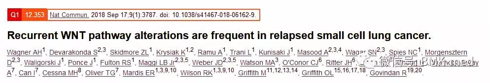 ? ? ? 近日,Alex H. Wagner等研究者發(fā)表在“NATURE COMMUNICATIONS”上的文章中,作者通過高通量測序?qū)CLC的化療耐受性的分子機制進行了研究,作者對12例來自處于診斷時期和復(fù)發(fā)時期的患者的配對SCLC腫瘤樣本,以及18例患者的非配對復(fù)發(fā)樣本,進行全外顯子組測序。在復(fù)發(fā)樣本鑒定到了多個體細胞拷貝數(shù)變異,包括ABCC1的增加,以及MYCLMSH2MSH6的缺失。作者還對30例患者中18例復(fù)發(fā)樣本進行了腫瘤RNA測序。結(jié)果表明,ASCL1低表達亞型和WNT激活在復(fù)發(fā)樣本中富集。通過敲低APC激活化療敏感性SCLC細胞系中的WNT信號,可以誘導產(chǎn)生化療耐受性。此外,體外誘導的耐化療細胞系中,WNT活性增加??偟膩碚f,此研究結(jié)果表明WNT信號激活是復(fù)發(fā)性SCLC化療耐受性的一種分子機制。