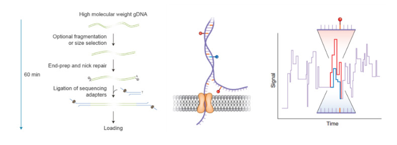 不同于傳統(tǒng)的甲基化檢測(cè)方法,使用ONT平臺(tái)進(jìn)行測(cè)序前,不需要再對(duì)DNA樣本進(jìn)行化學(xué)處理,避免了人為因素和化學(xué)因素的影響。具體步驟如下: