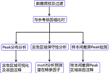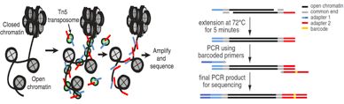 ATAC-seq:Assayfor Transposase-Accessible Chromatin with high throughput sequencing(使用高通量測序?qū)n5轉(zhuǎn)座酶易接近性核染色質(zhì)區(qū)域進(jìn)行測序分析),由美國加利福尼亞州斯坦福大學(xué)研究人員于2013年提出,是一種表觀遺傳學(xué)研究技術(shù),通過轉(zhuǎn)座酶對某種特定時空下開放的核染色質(zhì)區(qū)域進(jìn)行切割,獲得在該時空下基因組中所有活躍轉(zhuǎn)錄的調(diào)控序列。通過ATAC-seq研究可以得到全基因組上處于開放狀態(tài)的染色質(zhì)區(qū)域,進(jìn)一步定位核小體及相關(guān)調(diào)控元件。