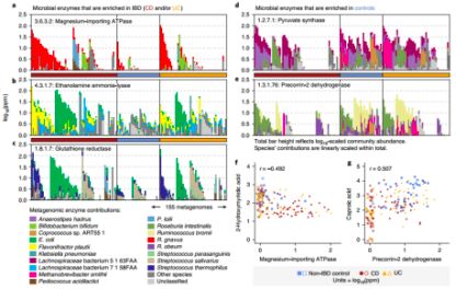(圖1.b-e:IBD與個體腸道微生物和代謝物的關(guān)聯(lián)性)