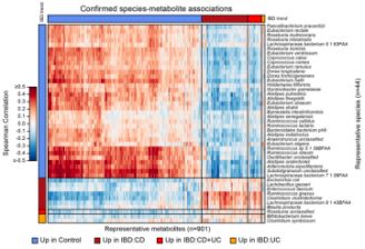 炎癥性腸?。↖BD)是一種由腸道微生物與腸道免疫系統(tǒng)相互作用異常而引發(fā)的慢性胃腸道炎癥。IBD包括潰瘍性結(jié)腸炎(UC)和克羅恩?。–D)兩種主要亞型,它們分別分布于大腸和小腸,且擁有各自獨(dú)特的微生物特征。研究表明,IBD患者的腸道微生物發(fā)生了巨大變化,與此同時,腸道微生物的代謝產(chǎn)物也能通過信號、免疫以及抗生素活性的途徑改變結(jié)腸環(huán)境。然而,腸道特異微生物與它們的分子產(chǎn)物如何通過相互作用來觸發(fā)、維持、減緩或預(yù)測IBD等炎癥狀況,我們目前仍不清楚。