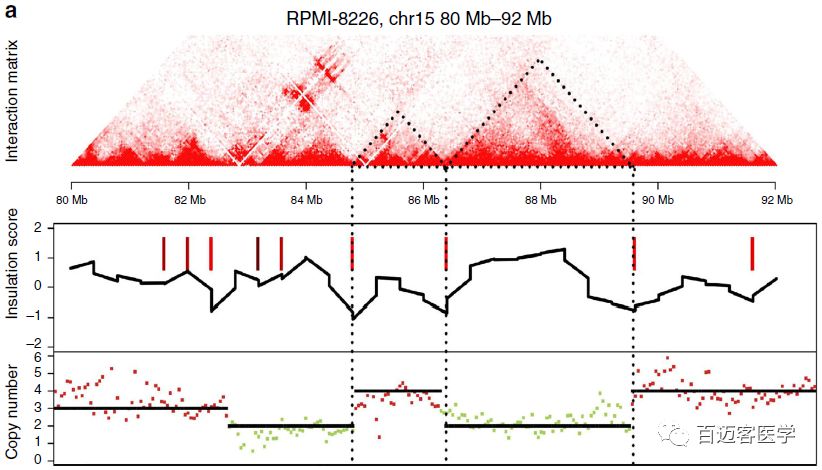 作者通過Hi-C對(duì)MM的三維基因組進(jìn)行了研究,并聯(lián)合WGS、RNA-seq、Chip-seq分析了三維結(jié)構(gòu)(compartment、TAD)、CNV、易位和基因表達(dá)之間的關(guān)系,從而識(shí)別MM相關(guān)的通路和關(guān)鍵基因。這些發(fā)現(xiàn)拓展了對(duì)MM的發(fā)生機(jī)制以及非整倍體癌癥基因組的空間無序性的認(rèn)識(shí),對(duì)MM的臨床治療和藥物開發(fā)有一定的啟示。