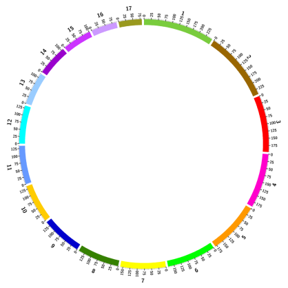 如果想自定義染色體排列順序,可以使用chromosomes_order參數(shù)來設(shè)定,假設(shè)在上圖的基礎(chǔ)上,想將hs11,hs12,hs13染色畫在前面,可以設(shè)置chromosomes_order=hs11;hs12;hs13;hs1;hs2;hs3;hs4;hs5;hs6;hs7;hs8;hs9;hs10;hs14;hs15;hs16;hs17;畫出的圖如下: