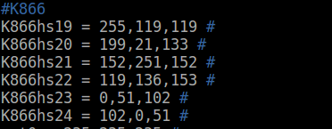 小編給大家溫習(xí)一下該文件各列的具體含義:第一二列一般都設(shè)置成chr和-;第三列染色體的編號,要求每條染色體的名字必須唯一;第四列染色體標簽,即在圖中展示的名字;第五列和第六列分別是染色體的起始和終止位置;第六列是每條染色體的顏色,軟件安裝目錄里的colors.ucsc.conf已經(jīng)使用RGB代碼定義了這些標簽的顏色。當(dāng)然,大家可以根據(jù)自己的需要在colors.brewer.conf文件中設(shè)置染色體的顏色(上圖hs19~hsY的顏色就是小編根據(jù)自己的需要設(shè)置的染色體顏色),circos教程具體設(shè)置方法如下: