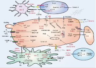 該研究篩選出23個(gè)與預(yù)后相關(guān)的胃癌候選蛋白藥物靶標(biāo),并提示彌漫型胃癌在以下四個(gè)通路最有可能找到治療靶標(biāo):經(jīng)典的腫瘤生長(zhǎng)通路、代謝和氧化應(yīng)激過(guò)程、細(xì)胞黏附和侵襲過(guò)程以及腫瘤和腫瘤微環(huán)境中的免疫調(diào)控。此外,該研究團(tuán)隊(duì)還針對(duì)目前熱度較高的腫瘤免疫治療的“地形圖”進(jìn)行了詳盡的分析。發(fā)現(xiàn)最近研究火熱的PD-L1/PD1在彌漫性胃癌中鮮有表達(dá),不太可能適合用作彌漫型胃癌的治療靶標(biāo),而包括IDO1、ARG1和CD47/SIRPA等在內(nèi)的多種免疫相關(guān)蛋白在彌漫型胃癌中表達(dá)較高,尤其在PX3腫瘤組織中顯著高表達(dá),且表達(dá)量與生存時(shí)間顯著負(fù)相關(guān),有可能作為免疫治療的候選靶標(biāo)。