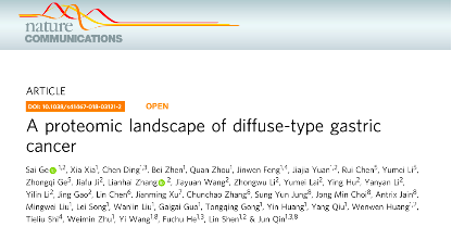 胃癌(GC)在全球腫瘤死亡原因中排名第三,我國(guó)是胃癌發(fā)病和死亡的重災(zāi)區(qū)。Lauren分型從形態(tài)學(xué)上將GC分為三種類(lèi)型:彌散型,腸型和混合型,彌漫型胃癌(DGC)占GC的約30%,預(yù)后最差,且缺少有效的靶向治療手段。盡管?chē)?guó)際上發(fā)表過(guò)基于基因組和轉(zhuǎn)錄組的胃癌分子分型,但均沒(méi)有與臨床預(yù)后實(shí)現(xiàn)有效的關(guān)聯(lián)性。本文對(duì)胃癌組織及其附近組織進(jìn)行蛋白質(zhì)組學(xué)研究,是DGC的蛋白質(zhì)組學(xué)分析,研究成果發(fā)表在Nature Communications雜志上。