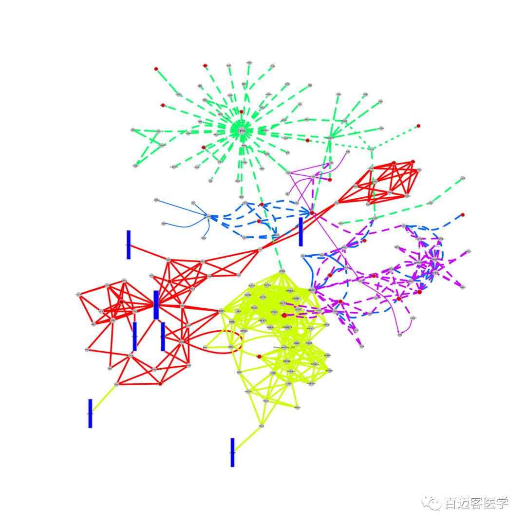 分析時發(fā)現(xiàn)差異表達(dá)基因或者感興趣的基因富集的通路太多,看通路圖可以獲取每個通路中基因的調(diào)控關(guān)系,然而這一個基因在多個通路中的調(diào)控關(guān)系看起來太麻煩了!而整合的通路網(wǎng)絡(luò)分析,可以讓您一目了然觀看您感興趣的基因在您感興趣通路中的調(diào)控機(jī)制。