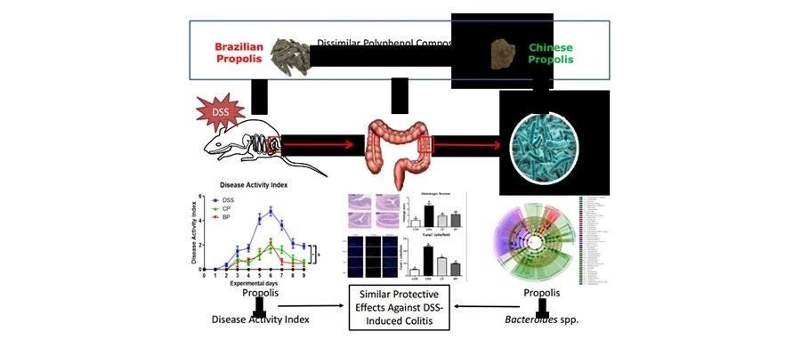盡管中國蜂膠(CP)和巴西蜂膠(BP)的多酚組成不同,產(chǎn)生的生理效應(yīng)也不同,然而它們均顯著降低了擬桿菌(Bacteroides spp)的種群豐度,從而對DSS誘導(dǎo)的結(jié)腸炎起到了的相似的保護作用。