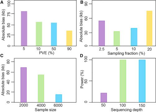 2.?取樣率與QTG位置偏差大?。寒?dāng)取樣率為20%時(shí),位置偏差略大;較大的取樣比例會(huì)增加群體大小,但有效重組事件數(shù)量也會(huì)增加