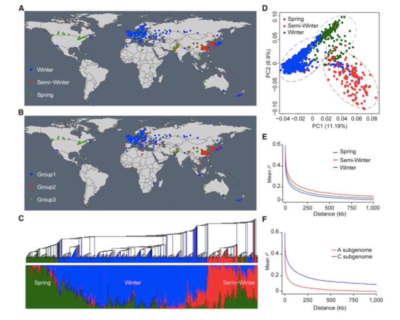 油菜(Brassica napus?L.)是世界上食用油和富含蛋白質(zhì)的牲畜飼料的重要來源。甘藍型油菜B.napus (AACC)起源于距今不到7500年的兩個二倍體祖先白菜(B.rapa(AA)(n=10))和甘藍(B.oleracea(CC)(n=9))之間的種間雜交。盡管油菜的進化歷史比親本品種短,但它已經(jīng)適應(yīng)了不同的氣候區(qū)和緯度,并形成了三個主要的生態(tài)型群,即冬季型、半冬季型和春季型。