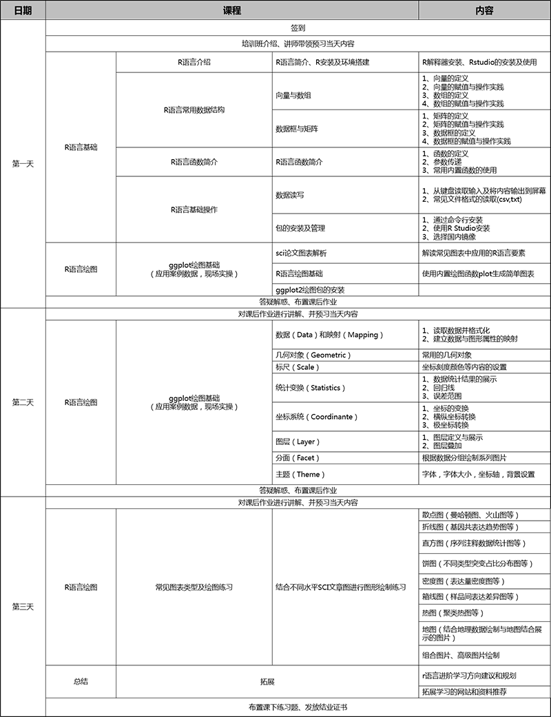 3、培訓(xùn)預(yù)期:通過3天培訓(xùn),可以系統(tǒng)了解、學(xué)習(xí)R語言基礎(chǔ),繪制和修改sci常用圖形。