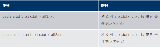 Paste命令可按列合并命令,可以很輕松的將兩個文件按列合并,下面是常見的舉例:?