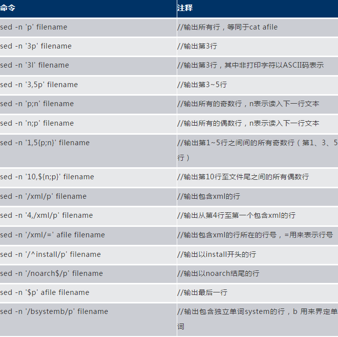 sed是一個強大的按行處理的命令,常用的命令如下: