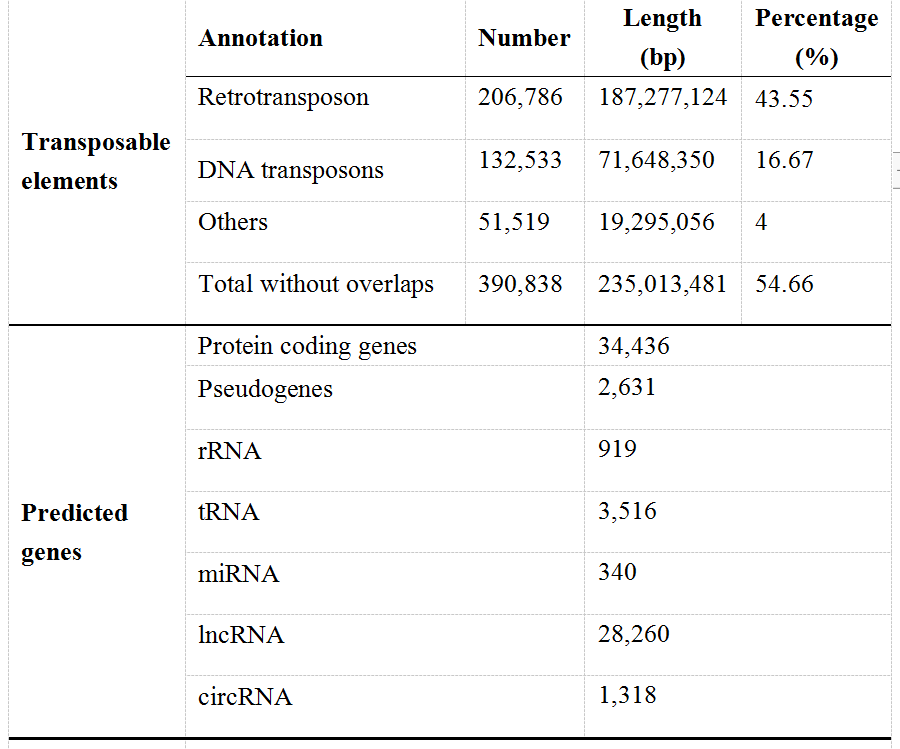 表1 “小米”基因組組裝與注釋統(tǒng)計(jì)?