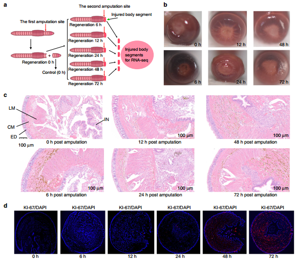 進(jìn)一步利用10xGenomics單細(xì)胞轉(zhuǎn)錄組測(cè)序深度解析蚯蚓再生機(jī)制,蚯蚓再生早期72小時(shí)后損傷愈合部位細(xì)胞的高比例組分是干細(xì)胞,且多能干細(xì)胞在蚯蚓再生早期過程中具有重要作用。此項(xiàng)研究提供了一些蚯蚓再生的候選分子細(xì)胞學(xué)機(jī)制。