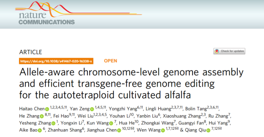 文章中利用了基因組三代測(cè)序技術(shù),獲得染色體級(jí)別的紫花苜蓿基因組的同時(shí),攻克了同源多倍體物種基因組組裝難題,組裝獲得了4個(gè)單倍型紫花苜?;蚪M,為后續(xù)基因編輯研究做了重要的鋪墊,進(jìn)而通過新技術(shù)CRISPR/Cas9基因編輯對(duì)控制相應(yīng)表型性狀基因進(jìn)行改造,對(duì)于紫花苜蓿后續(xù)分子生物學(xué)研究具有重要而深遠(yuǎn)的意義。