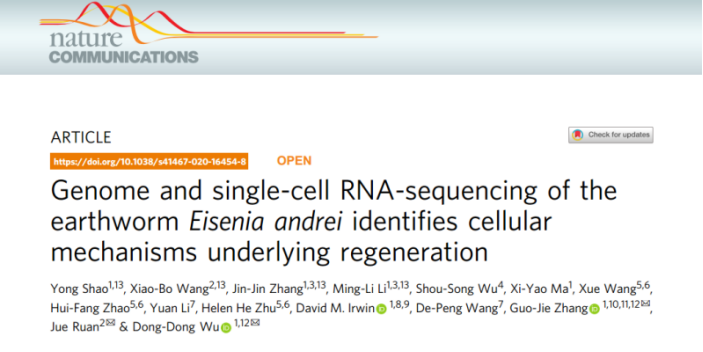文章中利用了三代測(cè)序技術(shù)及Hi-C輔助基因組組裝技術(shù),獲得染色體級(jí)別的蚯蚓基因組,基因組組裝連續(xù)性一般,但結(jié)合基因組序列信息及單細(xì)胞轉(zhuǎn)錄組研究解析了土壤生態(tài)系統(tǒng)重要成員無脊椎動(dòng)物蚯蚓再生的分子細(xì)胞學(xué)機(jī)制,提出蚯蚓能夠作為研究再生生物學(xué)或者再生醫(yī)學(xué)的一個(gè)新的模型。