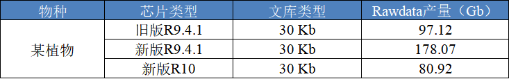 表1 同一樣品不同芯片對比產(chǎn)出情況(Denovo 30Kb 文庫)
