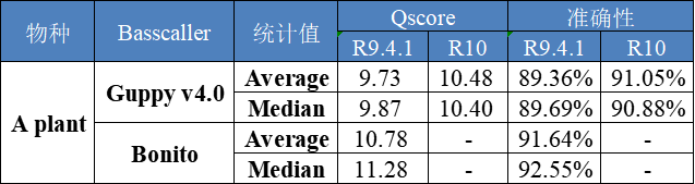 表4 新R9.4.1及R10 basecalling結(jié)果比對