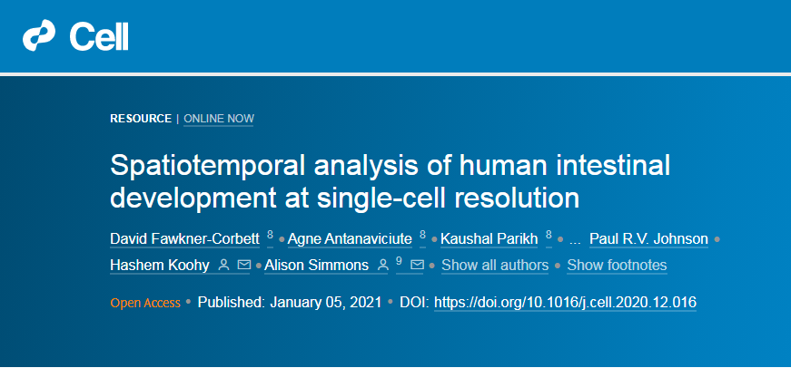 研究標題:Spatiotemporal analysis of human intestinal development at single-cell resolution
