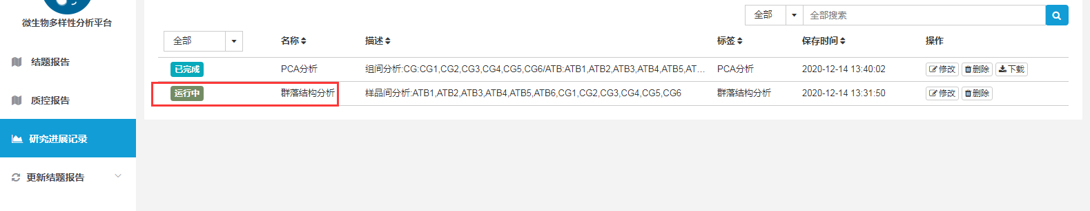 云平臺(tái)上關(guān)于群落結(jié)構(gòu)分析的操作非常簡單,打開結(jié)題報(bào)告后點(diǎn)擊“Beat多樣性分析”中的群落結(jié)構(gòu)分析,選中需要分析的樣品點(diǎn)擊提交,然后可以在分析記錄界面查看分析結(jié)果(由于會(huì)做999次重復(fù)計(jì)算,大家耐心等待哦)。
