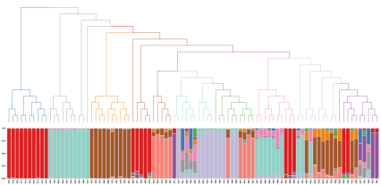 群體結(jié)構(gòu)和系統(tǒng)發(fā)育樹組合圖: