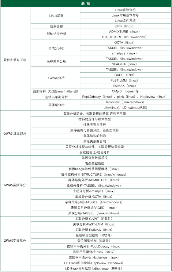 本課程主要從實(shí)踐入手,重點(diǎn)講解 GWAS 分析中用到的各種分析方法與常用分析軟件。包括群體結(jié)構(gòu)分析、主成分分析、親緣關(guān)系分析、連鎖不平衡分析、單體型分析等內(nèi)容。從原始數(shù)據(jù)開始,逐步完成分析內(nèi)容,并對(duì)分析內(nèi)容進(jìn)行整理與挖掘,將數(shù)據(jù)轉(zhuǎn)化成更直觀的圖形來(lái)展示最終的分析結(jié)果。同時(shí),課下還可反復(fù)觀看課程視頻,有問(wèn)題隨時(shí)售后群中交流溝通,真正實(shí)現(xiàn)“線上學(xué)習(xí)理解,課后練習(xí)指導(dǎo),課下文檔復(fù)習(xí)”。