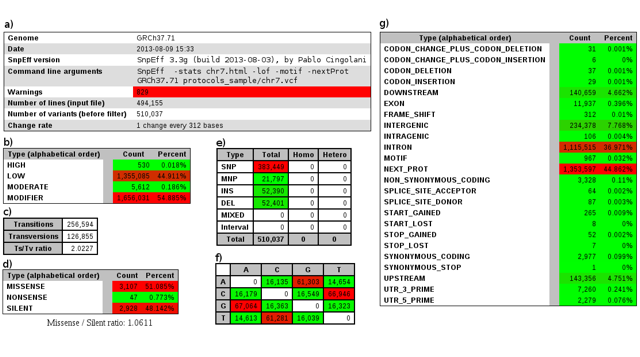 SnpEff 軟件通過(guò)基因組結(jié)構(gòu)注釋數(shù)據(jù)(GTF/GFF文件),對(duì)VCF文件中的SNP/InDel信息進(jìn)行注釋,即主要解釋了SNP/InDel是否能夠?qū)幋a蛋白基因造成影響。SnpEff自帶大量已經(jīng)發(fā)表的基因組的信息,可以快速利用已發(fā)表的基因組信息進(jìn)行SNP/InDel位點(diǎn)的注釋分析。對(duì)于未收錄的基因組,SnpEff也提供了標(biāo)準(zhǔn)流程來(lái)構(gòu)建對(duì)應(yīng)的分析數(shù)據(jù)庫(kù)。