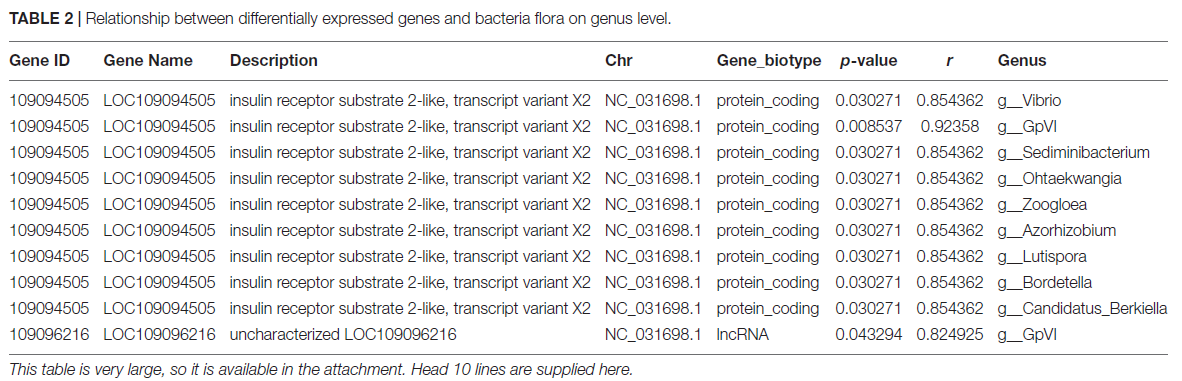Su S, Jing X, Zhang C, et al. Interaction Between the Intestinal Microbial Community and Transcriptome Profile in Common Carp (Cyprinus carpio L.)[J]. Frontiers in Microbiology, 2021, 12.