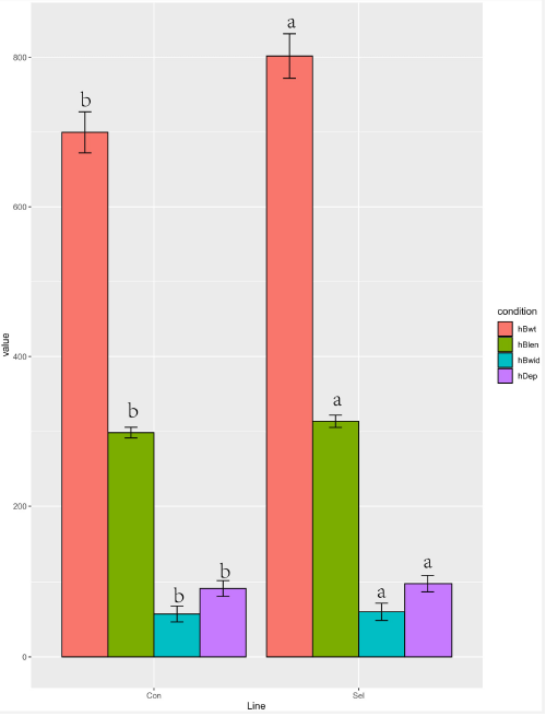 生長性能測定:養(yǎng)殖5個月后,隨機抽取366只黃河鯉(對照組180只,實驗組186只)。體重(hBwt)用電子秤測量(準確度:0.1克),而體長(hBlen)、體寬(hBwid)和體高(hDep)用塑料尺測量(準確度:0.1厘米)。Student’ t檢驗用于檢驗實驗組和對照組之間的差異(P<0.05)。