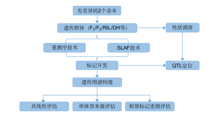 利用這些家系群體,基于高通量測序?qū)θ后w進行基因分型,得到數(shù)以萬計的SNP標(biāo)記,構(gòu)建高密度遺傳圖譜,用于定位控制重要農(nóng)藝性狀的QTL,是基因定位有效且常用的方法之一。